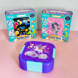 Cute Cartoon Kids Lunch Box with Spoon – Compartment School Tiffin Box for Dry Foods