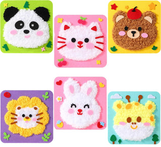 Kids Animal Needle Threading Wool Art Kit – DIY Fluffy Face Sewing Craft Set (Random)