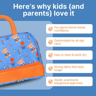 Cots and Cuddles Cute Sporty Bear Theme Printed Canvas Lunch Bag for Kids