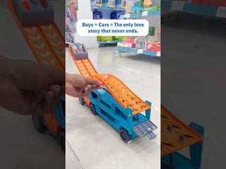 Folding Slide Truck with 3 Die Cast Cars Track Set for Kids Racing & Pretend Play Toy