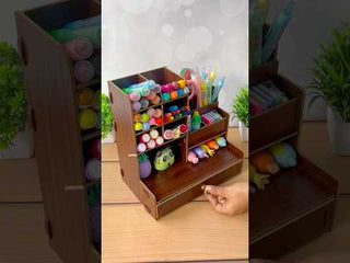 Wooden Desk Organizer – 10 Compartments with Drawer & Phone Holder (Random)