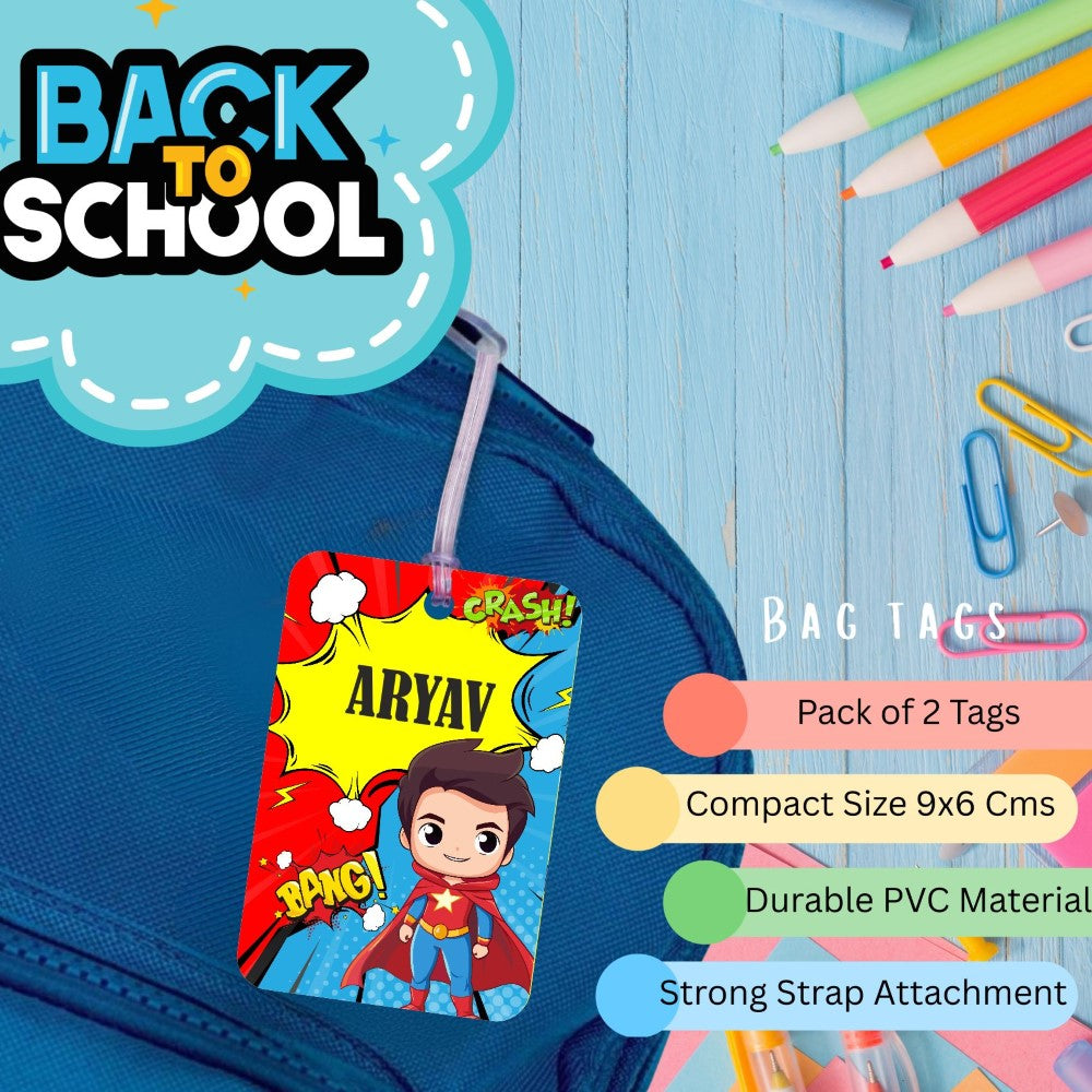Personalised PVC Bag Tags designed to keep your belongings safe, stylish, and easy to identify. Perfect for school bags, travel luggage, and backpacks, with an added option to include an emergency contact at the back for extra safety.