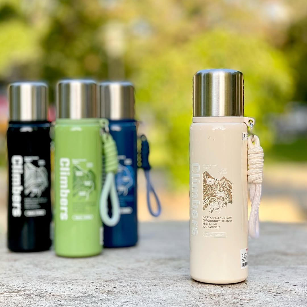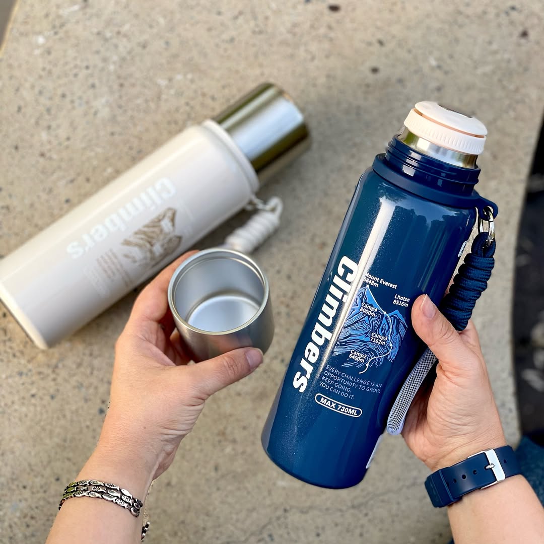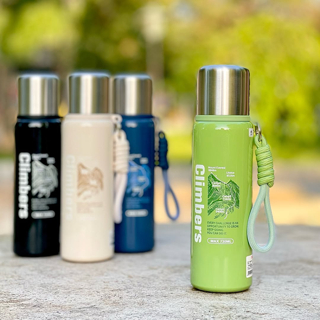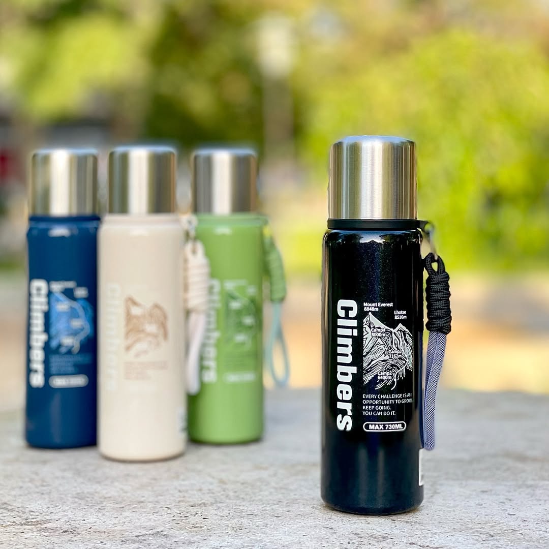 Stay energized on every adventure with the Climbers 730ML Double Wall Flask. Crafted with premium 304 stainless steel, this vacuum-insulated flask keeps your beverages hot during chilly winter mornings and refreshingly cold on summer trips. Designed with a button-lock pouring system and a built-in steel cup lid, it’s perfect for trekking, travel, office, and everyday hydration.