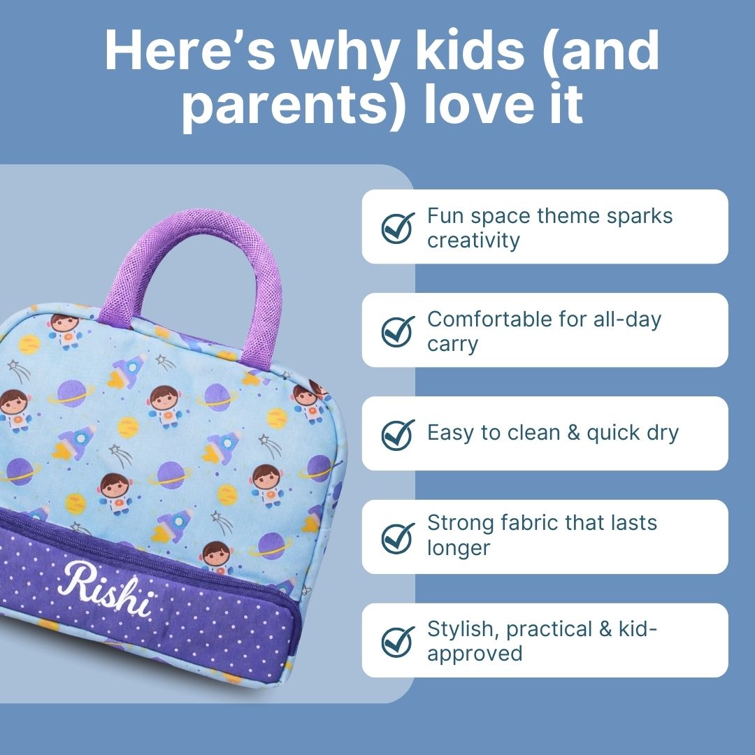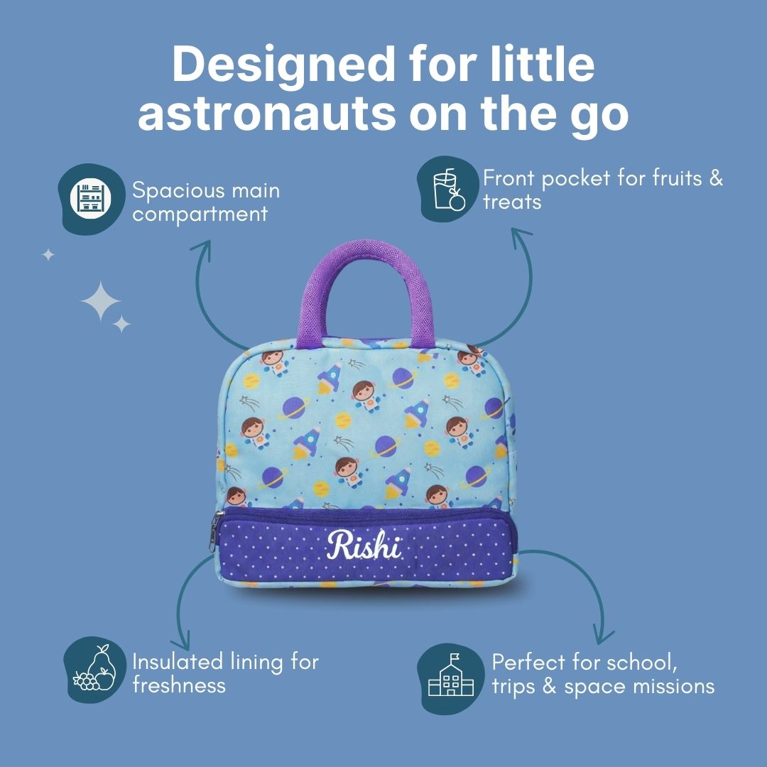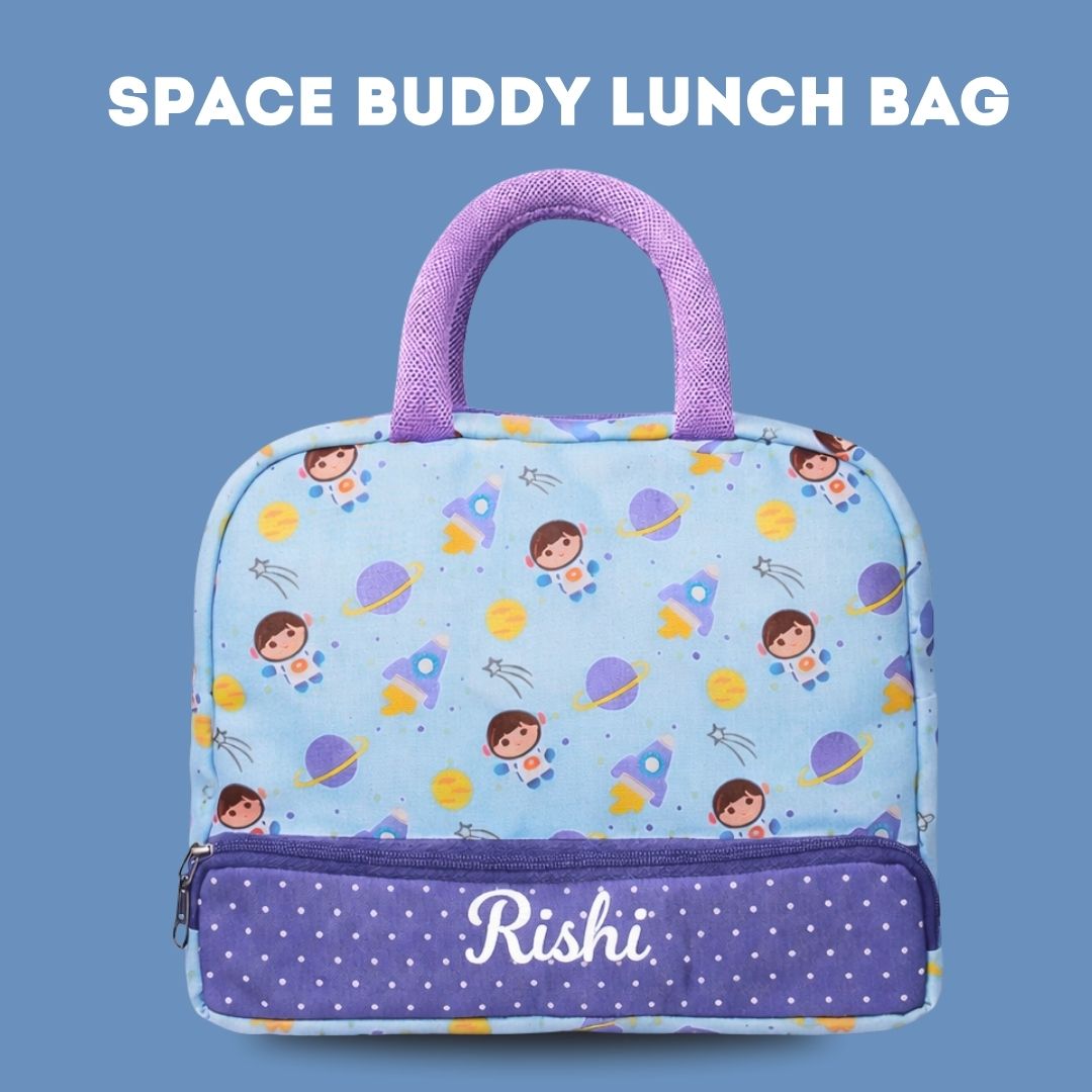 Cots and Cuddles Cute Space Buddy Theme Printed Canvas Lunch Bag for Kids