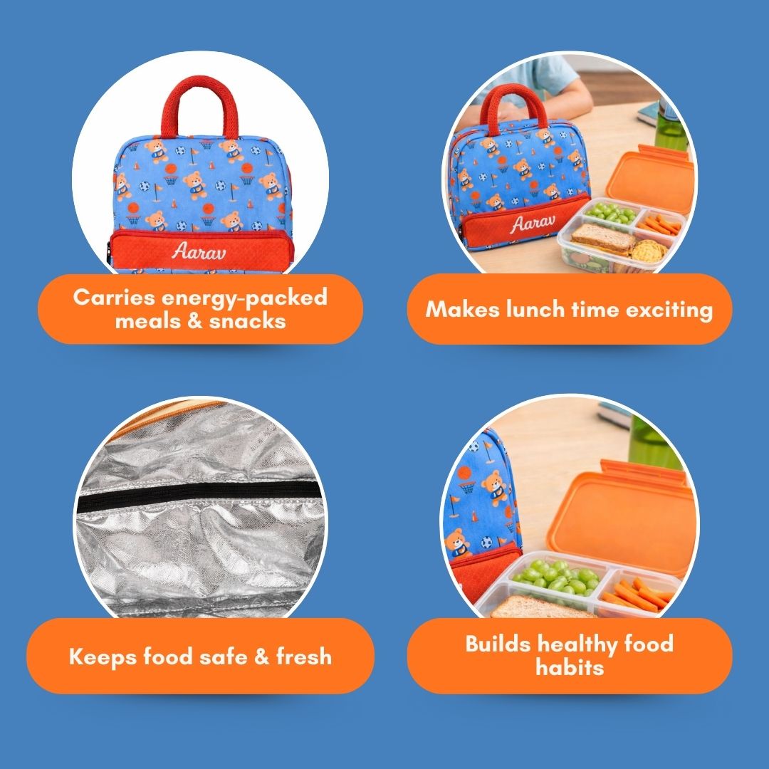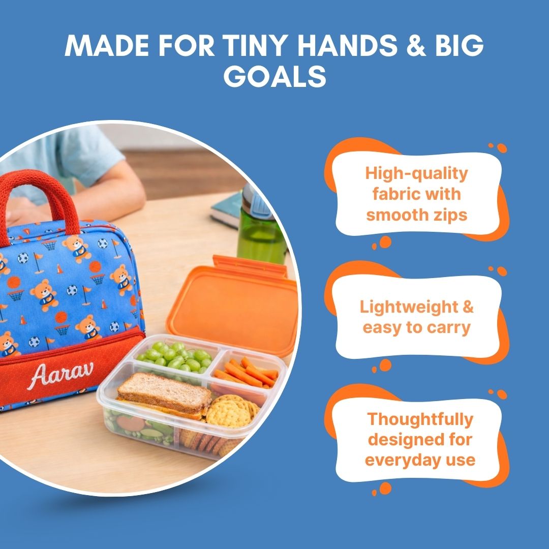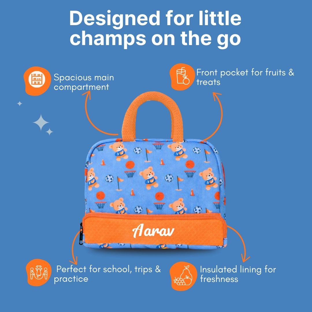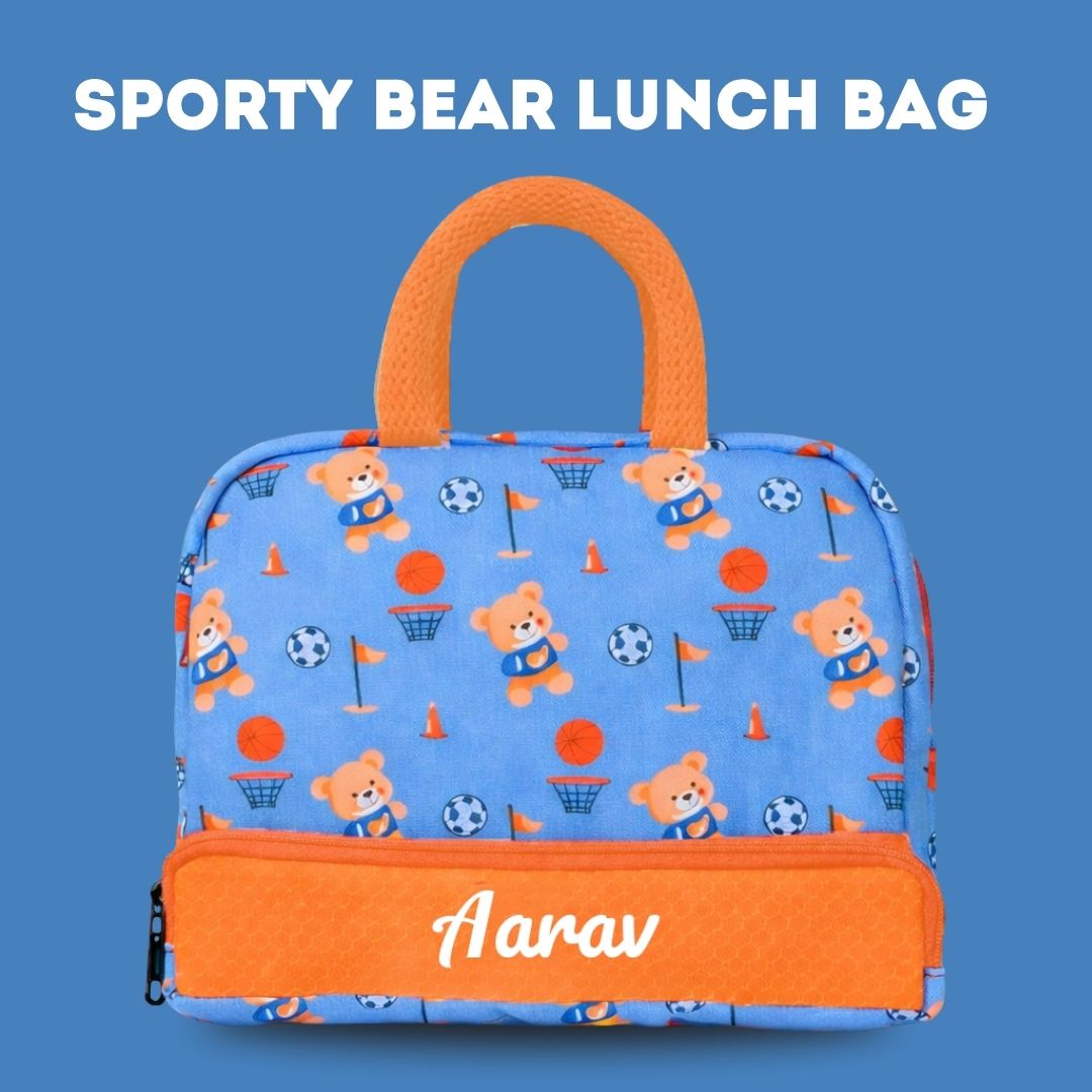 Cots and Cuddles Cute Sporty Bear Theme Printed Canvas Lunch Bag for Kids