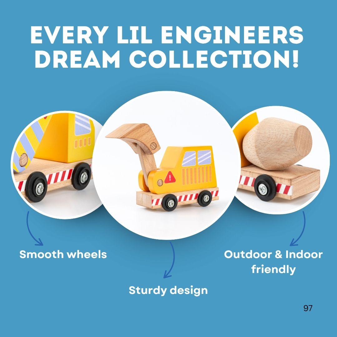 Cots and Cuddles Wooden Construction Vehicle Set for Kids