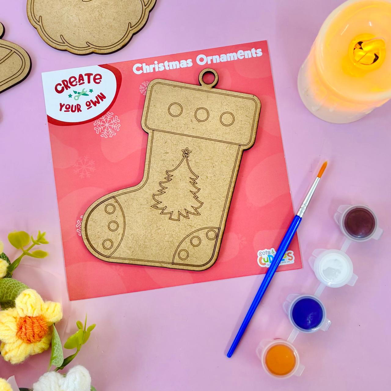 • Festive DIY Craft Kit: Includes MDF cut-out ornaments in Christmas shapes like santa, socks & trees for creative coloring fun.