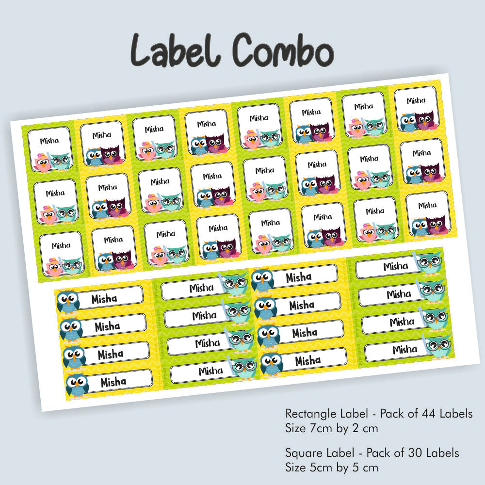 Labels Combo - Zig Zag Owl - PREPAID ORDER (Dispatch in 5-6 Days)