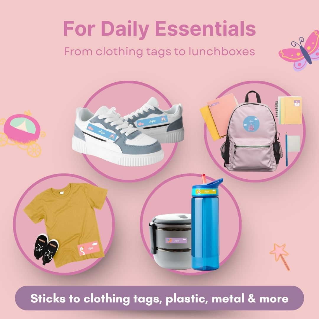 These can be used on books, bottles, tiffin, school bag, lunch bag & shoes etc.