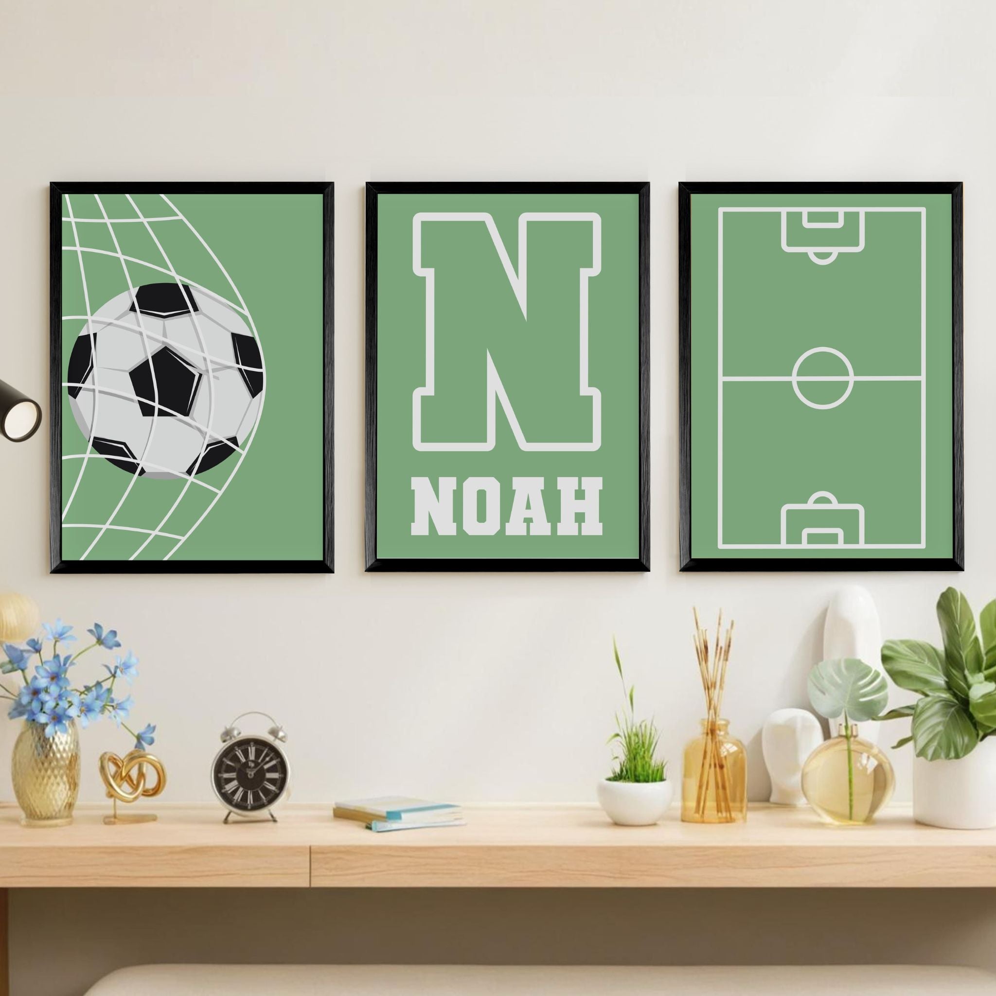 Personalized Name Wall Art Frame Set of 3 Home Decor (Football)
