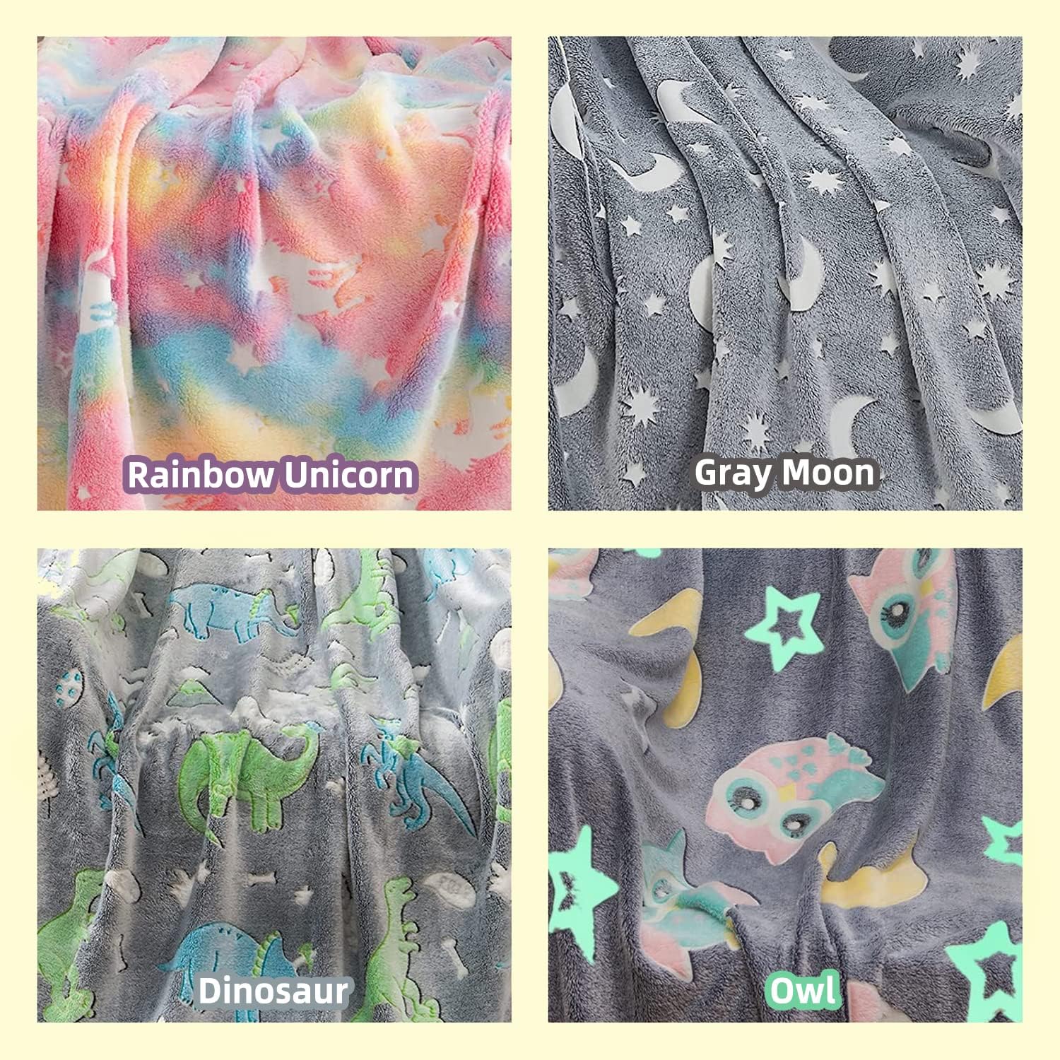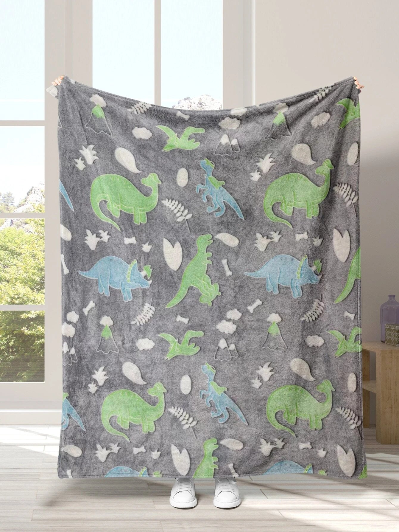 Soft Warm Cozy Furry Blanket Glow in The Dark (182CM X 182CM) (Dino)