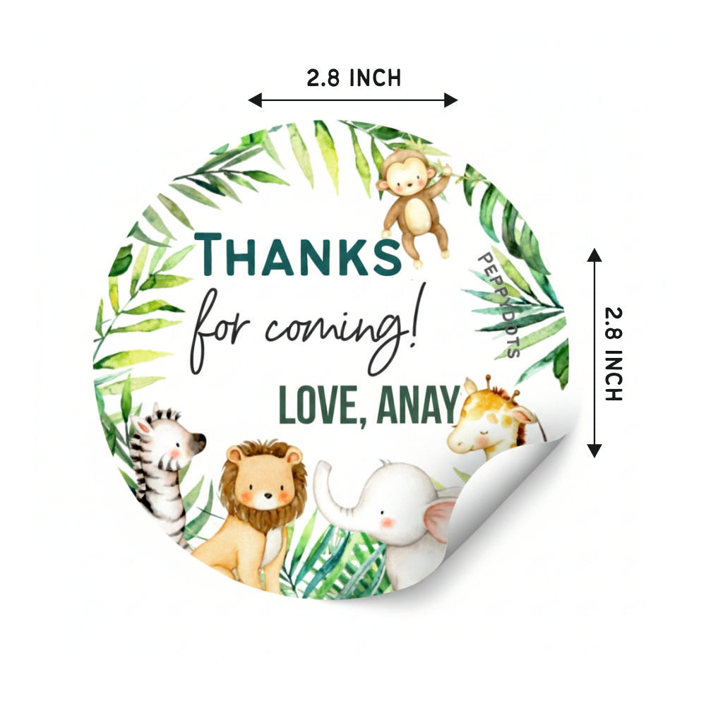 Round Thank You Label - Safari Animals (24 Pcs) (PREPAID ONLY) (Dispatch in 5-6 Days)