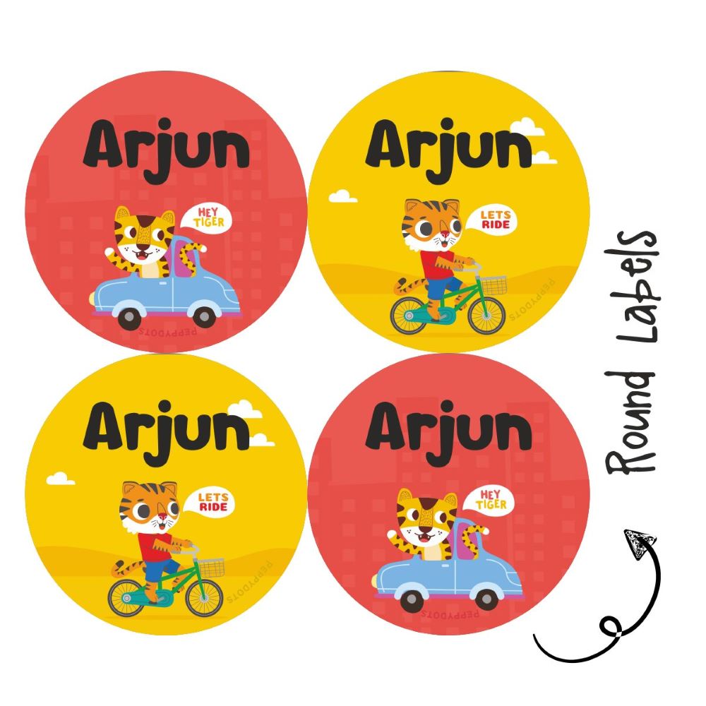 Round Waterproof Labels - Tiger Ride (70 Pcs) (PREPAID ONLY)