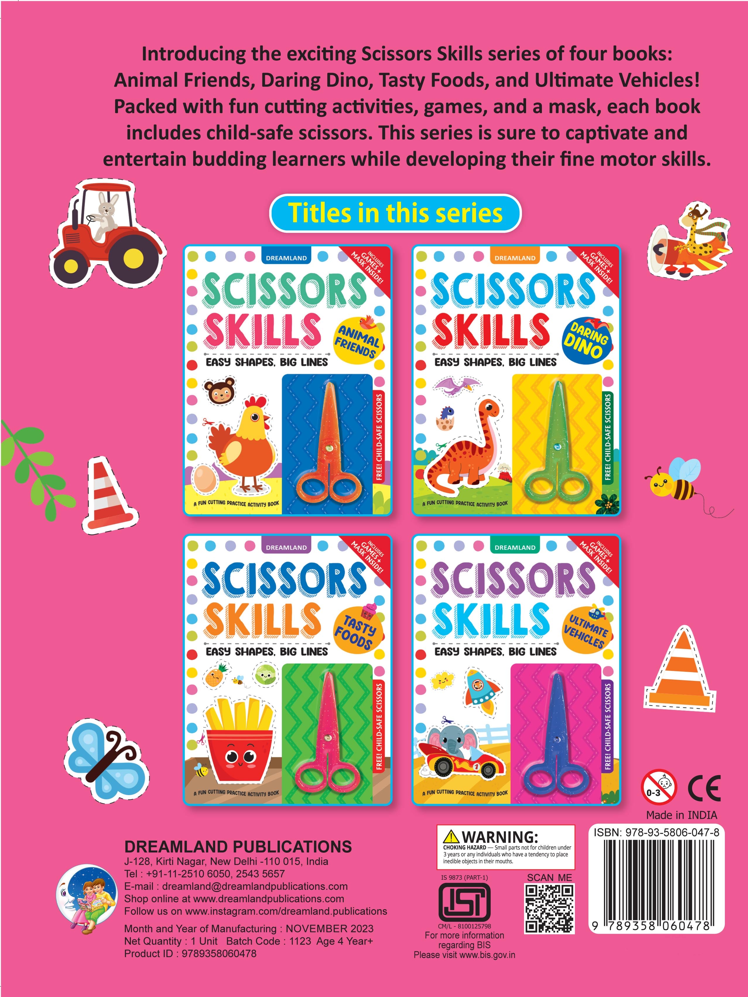 Introducing the exciting Scissors Skills Book Ultimate Vehicles! Packed with fun cutting activities, games and a mask, this book includes child-safe scissors. This book is sure to captivate and entertain budding learners while developing their fine motor skills.
