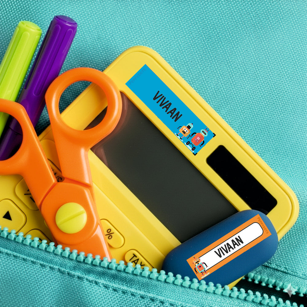 Are you tired of your kids losing their belongings at school or daycare? Are their belongings constantly ending up in the lost and found? Say goodbye to these worries with our fantastic Waterproof Labels - ROBOTS - Pack of 88 labels, specially designed for kids! These fun and vibrant labels are the ultimate solution to keep your children's possessions safe and secure.